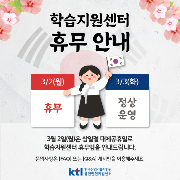 삼일절 대체공휴일 학습지원센터 휴무 안내드립니다. (3/2)