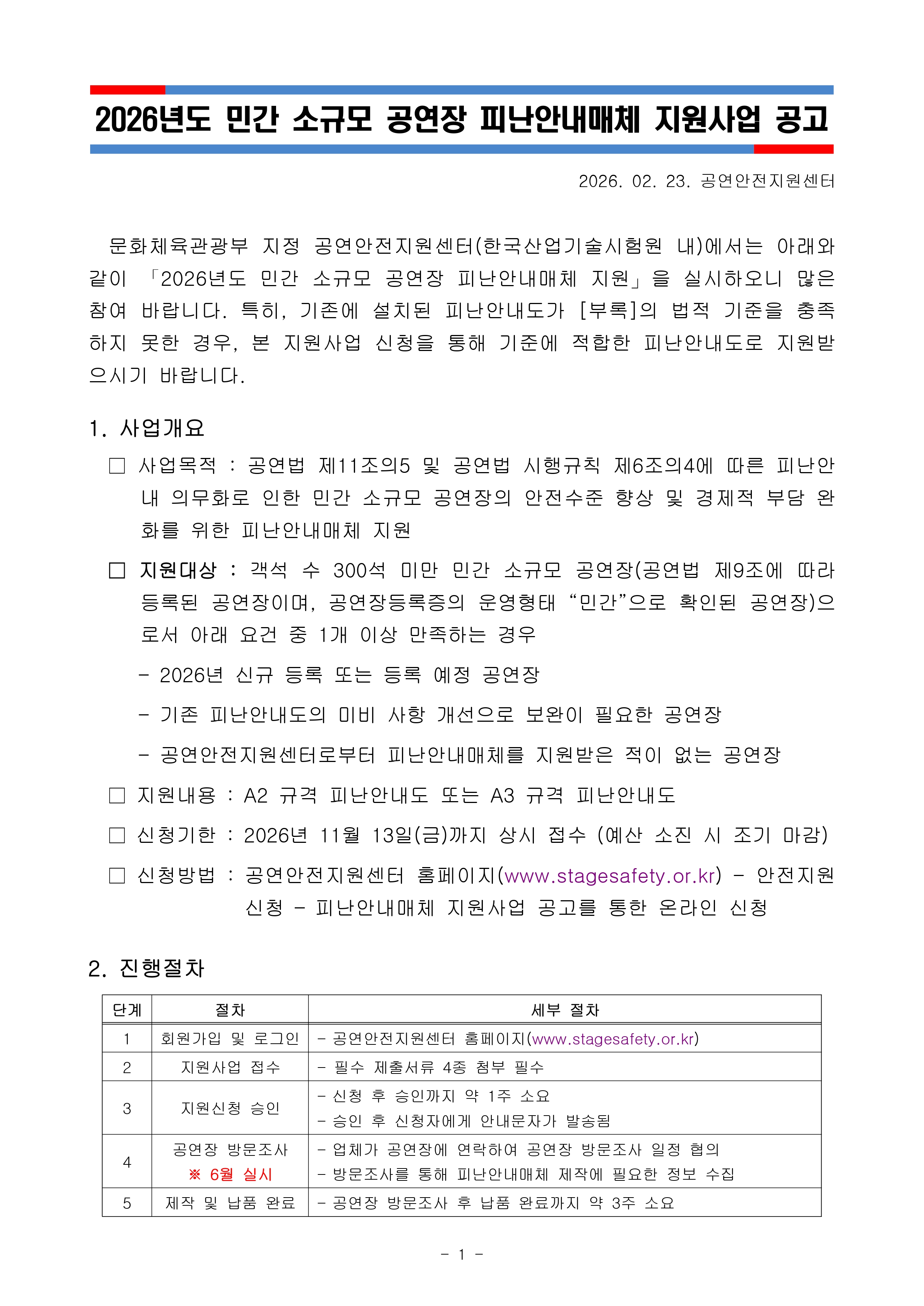 [붙임1~4] 2026년도 민간 소규모 공연장 피난안내매체 지원 사업.hwp